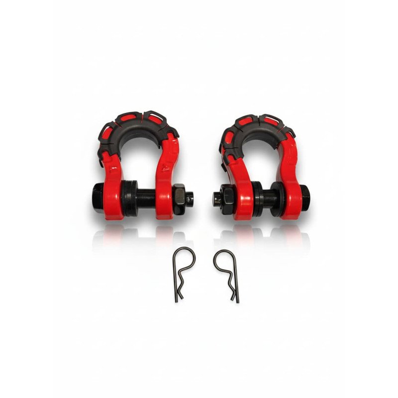 Este kit de grilletes de 3/4" no es solo fuerza bruta. Están fabricados en acero forjado de alta resistencia, capaces de soportar hasta 8 Toneladas (17,600 LBS), pero lo que los hace destacar es su sistema de protección integral. Gracias a sus aisladores y arandelas de poliuretano, se acabó el molesto traqueteo metálico mientras conduces.